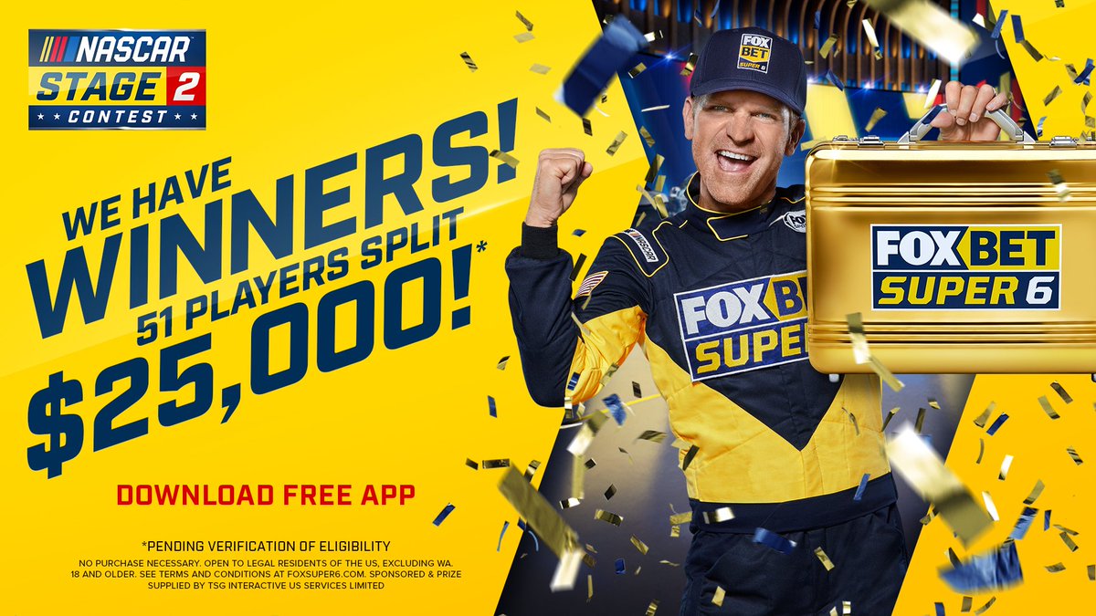 Louise joined a growing list of Super 6 winners with her win pushing the combined winnings for the free-to-play FOX Bet Super 6 app to over 6 million in cash prizes since the contests originated. And you can number yourself among those great performers by winning 25000 of Clint Bowyers money on the FOX Bet Super 6 Daytona 500 Stage 2 Contest for Sunday. Get all six picks right to win the jackpot.